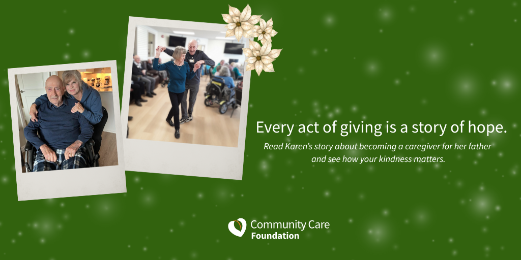 Donations from this Holiday Appeal will be used to support Community Care’s Subsidy Program & Volunteer Services. With a growing and aging population, the demand for our services and volunteers to deliver them has increased. Subsidies ensure your neighbours can access compassionate care without financial barriers and volunteers help keep costs low.